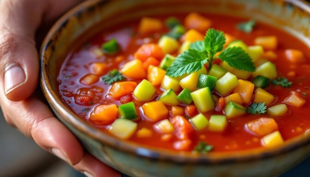 No existe una dosis terapéutica oficial para el gazpacho, pero la recomendación general entre dietistas-nutricionistas apunta a una ración diaria de 200–300 ml como complemento a una alimentación variada. Puede tomarse como entrante, como merienda o como acompañamiento de una comida principal ligera. Lo que los especialistas desaconsejan es el gazpacho industrial envasado con exceso de sal o con conservantes: la diferencia nutricional respecto al casero es notable, sobre todo en contenido de sodio y en la integridad de los antioxidantes.