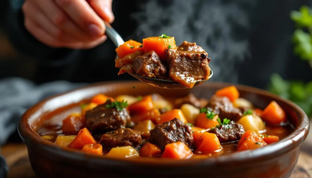 Lo que diferencia a este guiso de una simple carne estofada es la paciencia: dos horas a fuego lento no son un capricho de receta antigua, sino una decisión técnica con consecuencias concretas en la textura, el sabor y la estructura del plato. A continuación, encontrarás los ingredientes exactos, las etapas de preparación detalladas y las razones científicas y culinarias por las que el tiempo lo cambia todo. Con el delantal puesto, puedes comenzar.